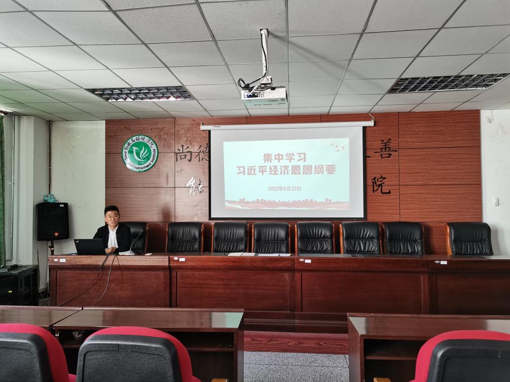 为了深入学习贯彻习近平新时代中国特色社会主义思想,让全体教职工更加系统地学习掌握习近平经济思想,9月22日学院组织全体教职工在秋实楼B405集体学习《习近平经济思想学习纲要》。