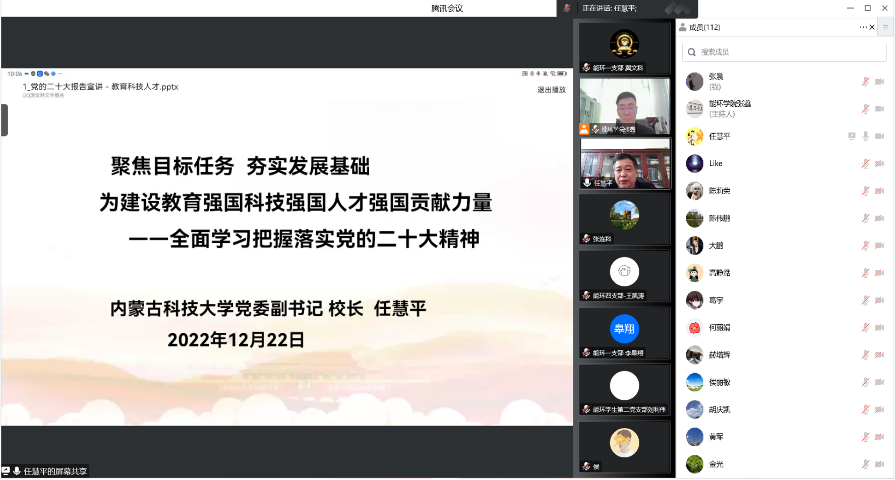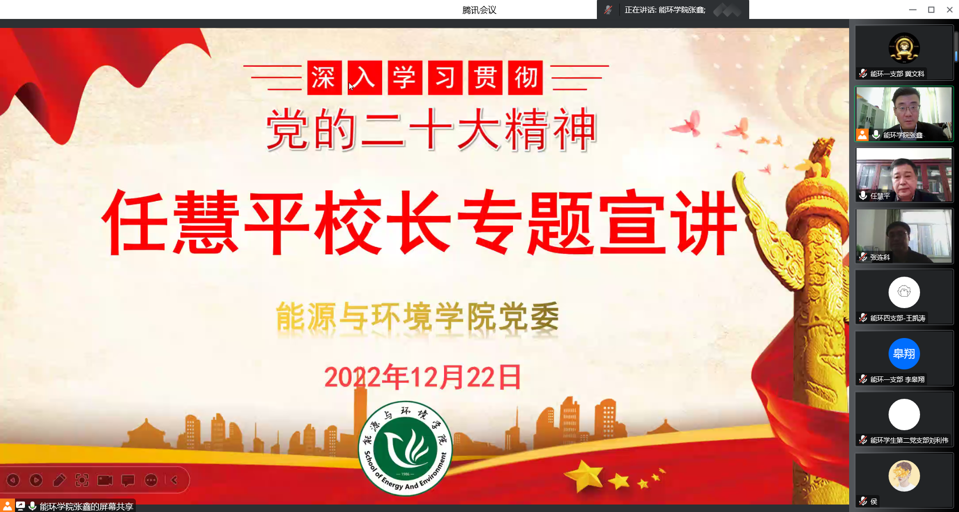 为全面深入学习宣传贯彻党的二十大精神,推动党的二十大精神入脑入心、落地生根, 12月22日上午,公司邀请学校党委副书记、董事长任慧平教授为学院全体教师作党的二十大精神专题宣讲。公司党委书记张鑫主持宣讲会。