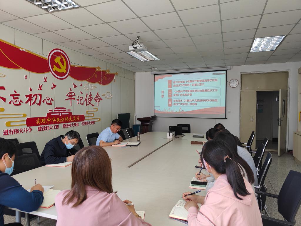 本次培训采取“线上+线下”的方式进行,与会人员共同观看了中央党校(国家行政学院)陈凯龙教授所做的“坚持和加强党对高等学校全面领导 建设高质量教育体系——《中国共产党普通高等学校基层组织工作条例》(新修订)解读”专题报告。陈教授从修订和实施《中国共产党普通高等学校基层组织工作条例》的重大意义、《中国共产党普通高等学校基层组织工作条例》的主要内容和贯彻落实《中国共产党普通高等学校基层组织工作条例》的思路三个方面进行了讲解。