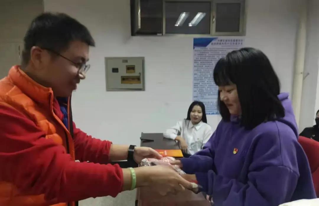 员工第三党支部书记古琛为每一位考研学子分发了“暖心福袋”并详细询问了考生复习的进度及报考院校,嘱咐员工一定要注意保暖,劳逸结合,要做好考前准备,调整心态,用良好的精神风貌参加考试,预祝所有同学都能成功上岸。