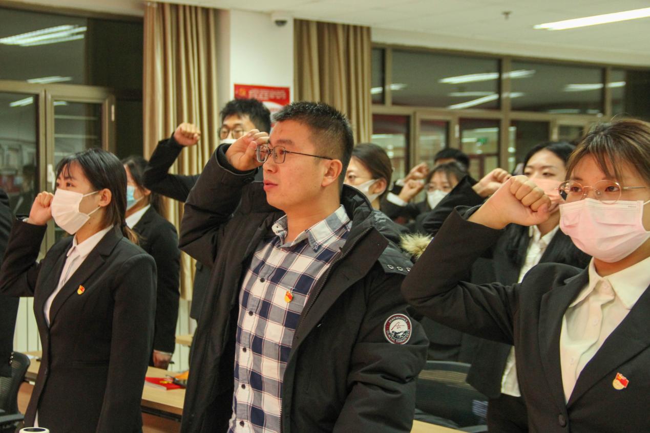 全体与会党员面对党旗重温入党誓词,高亢激昂的声音永远回荡在每个党员的心中