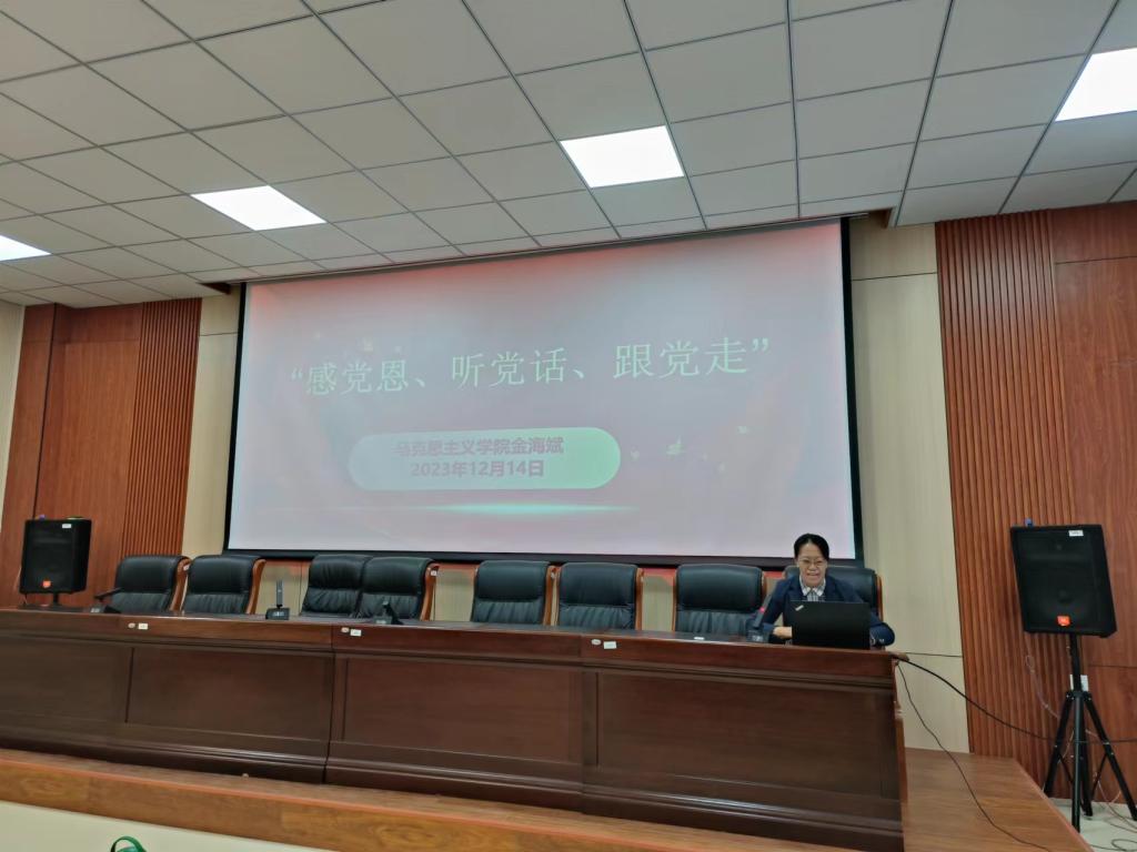 2023年12月14日下午,学院特邀请校宣讲团成员、马克思主义学院副院长金海斌教授来院做主题宣讲。宣讲会在秋实副楼418会议室举行,学院领导班子、全体教职工参会聆听。