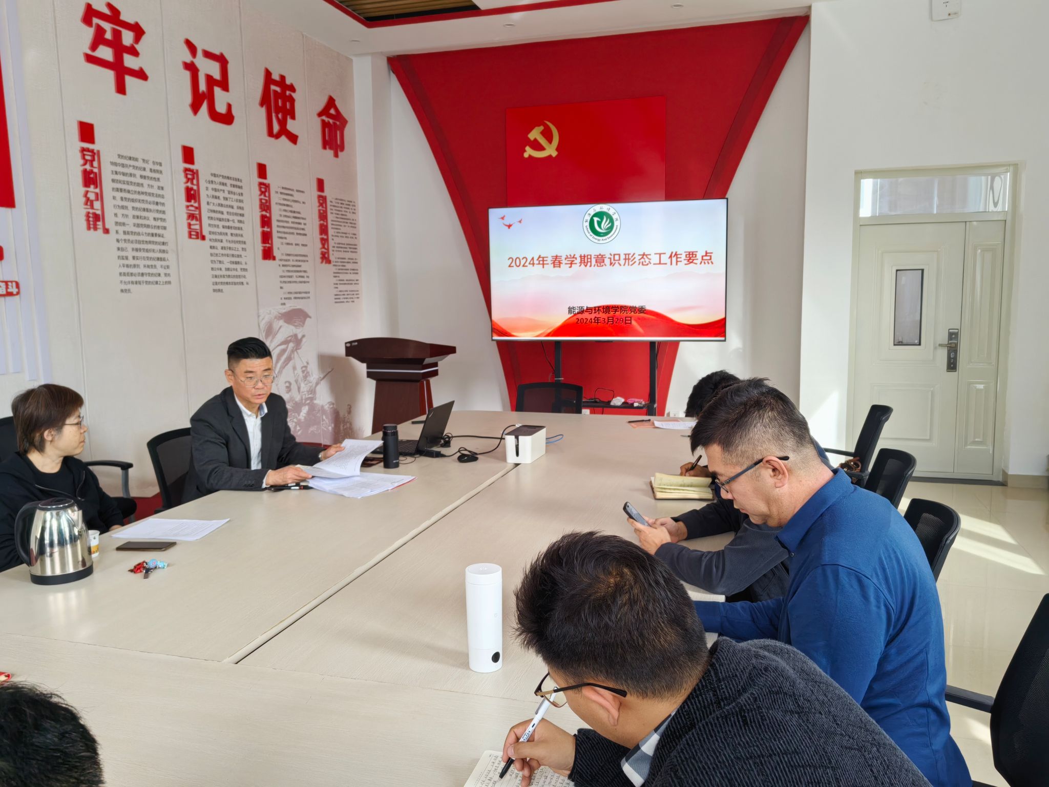会议“第一议题”专题学习《中国共产党宣传工作条例》,传达学校春季学期工作会议暨全面从严治党会议关于意识形态工作部署情况,总结了学院2023年度意识形态工作,就当前我院现阶段意识形态领域状况和存在问题进行了分析研判,安排部署了2024年意识形态工作。