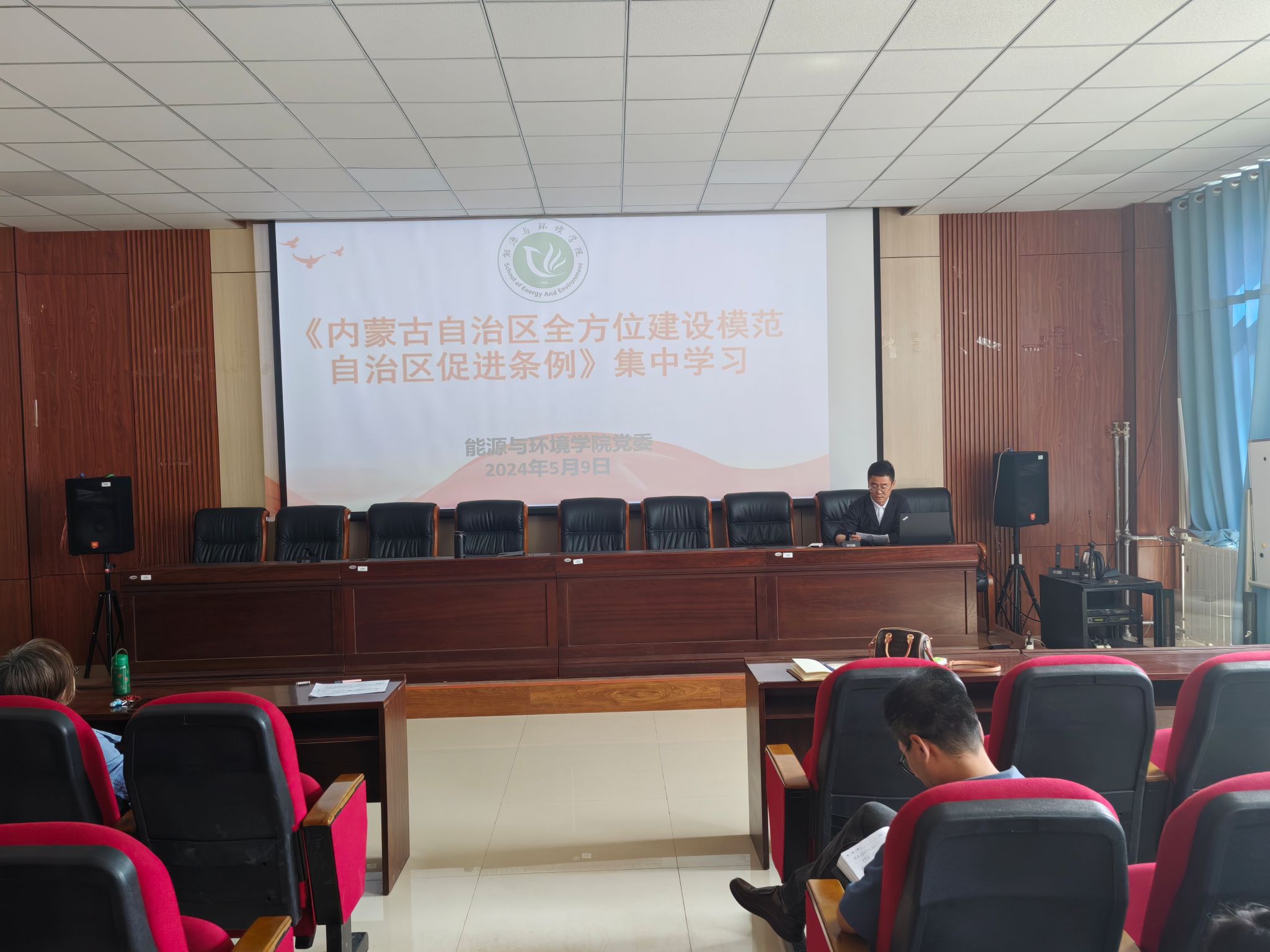 为完整准确全面把握和贯彻习近平总书记关于加强和改进民族工作的重要思想,紧紧围绕完成好习近平总书记交给内蒙古的五大任务和全方位建设“模范自治区”两件大事,紧扣“牢记嘱托、感恩奋进,全面建设铸牢中华民族共同体意识示范区”主题,按照学校“民族政策宣传月”工作部署,5月9日下午,学院开展《内蒙古自治区全方位建设模范自治区促进条例》专题学习,党委书记张鑫主持会议,全体教职工参加学习。