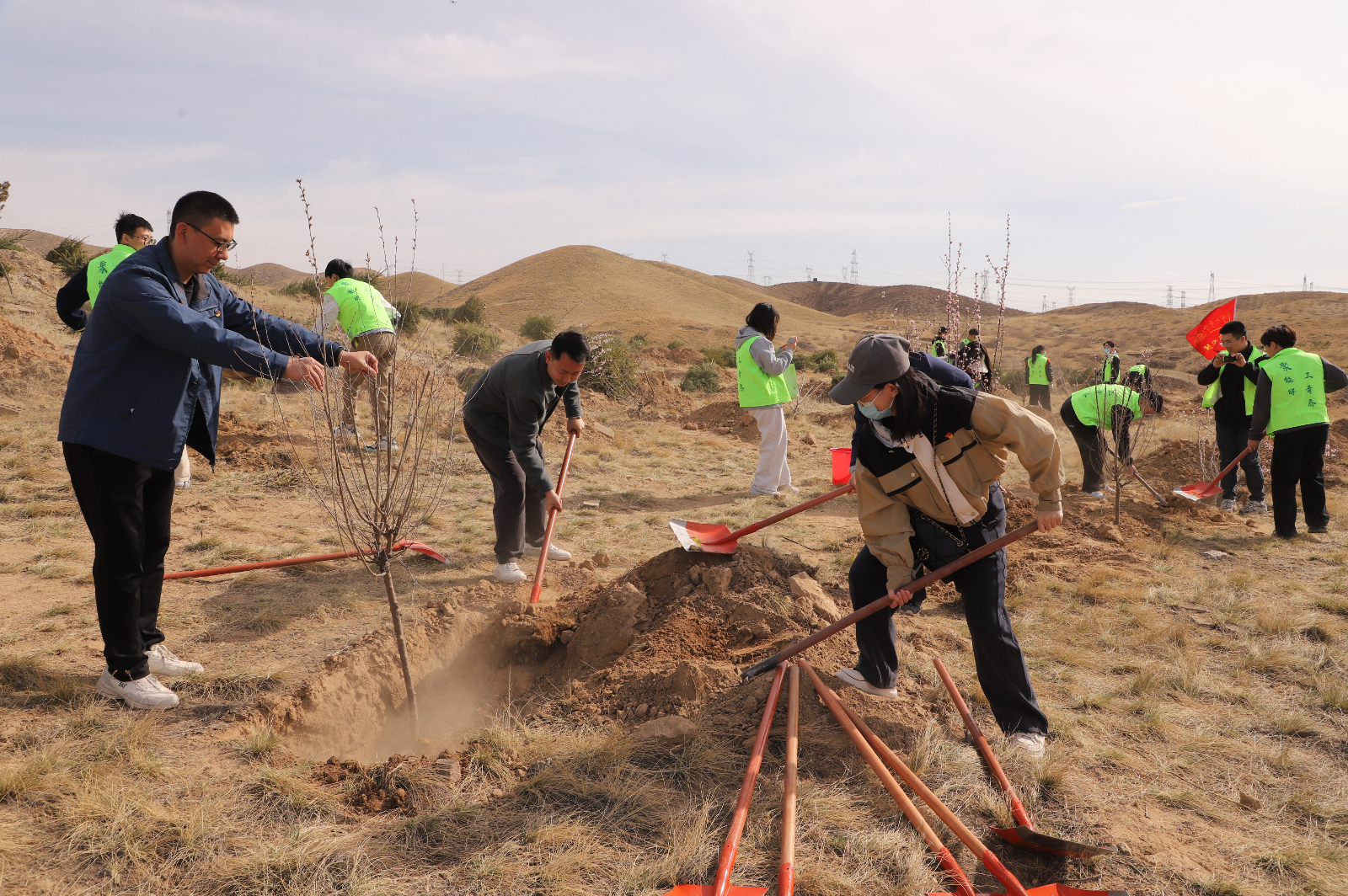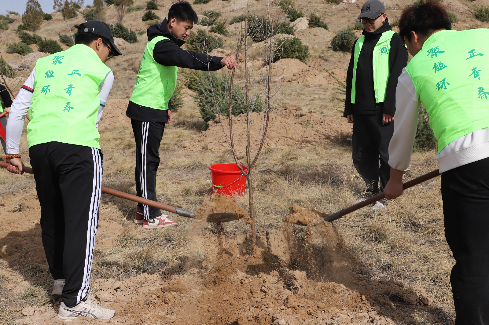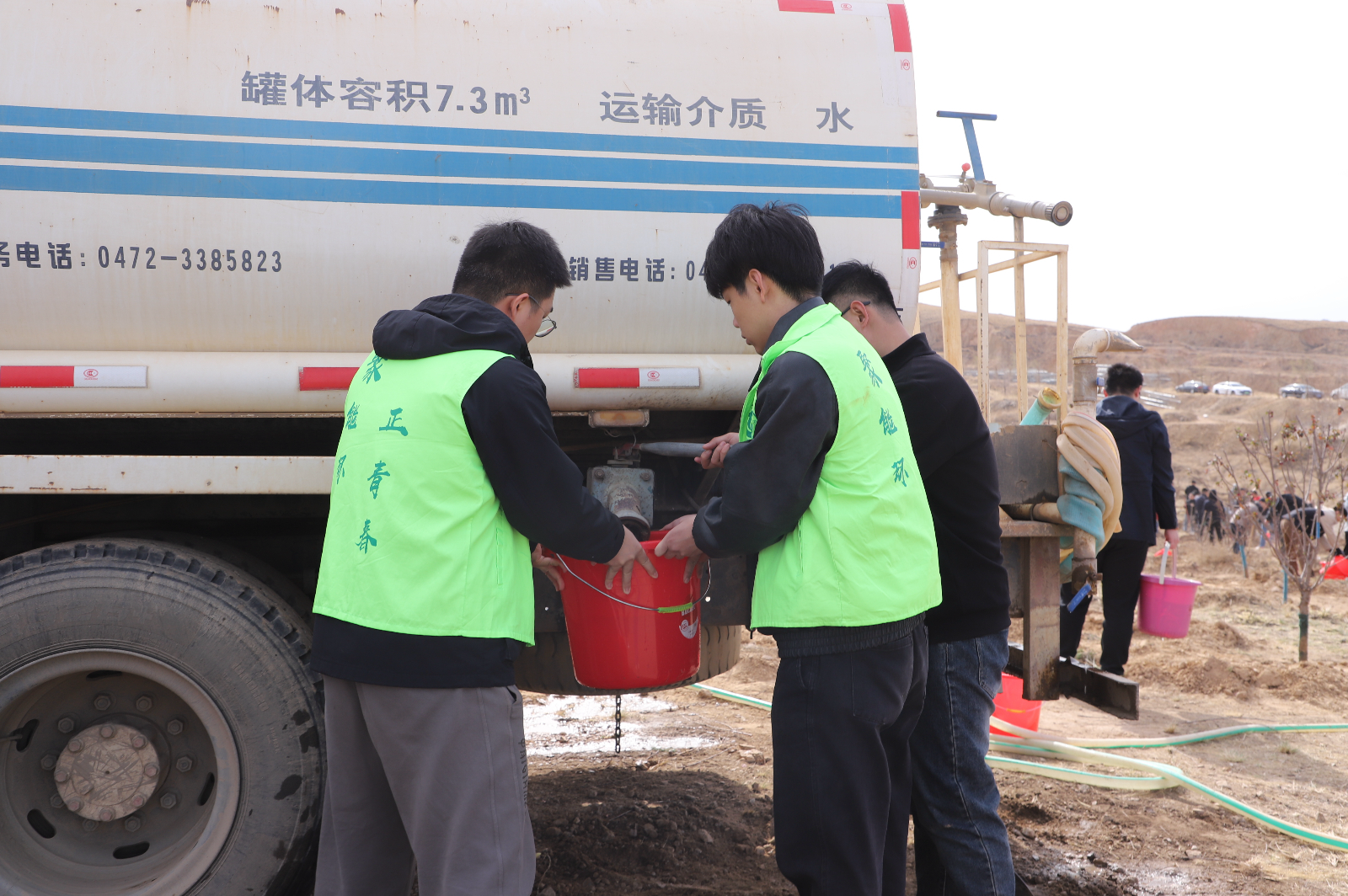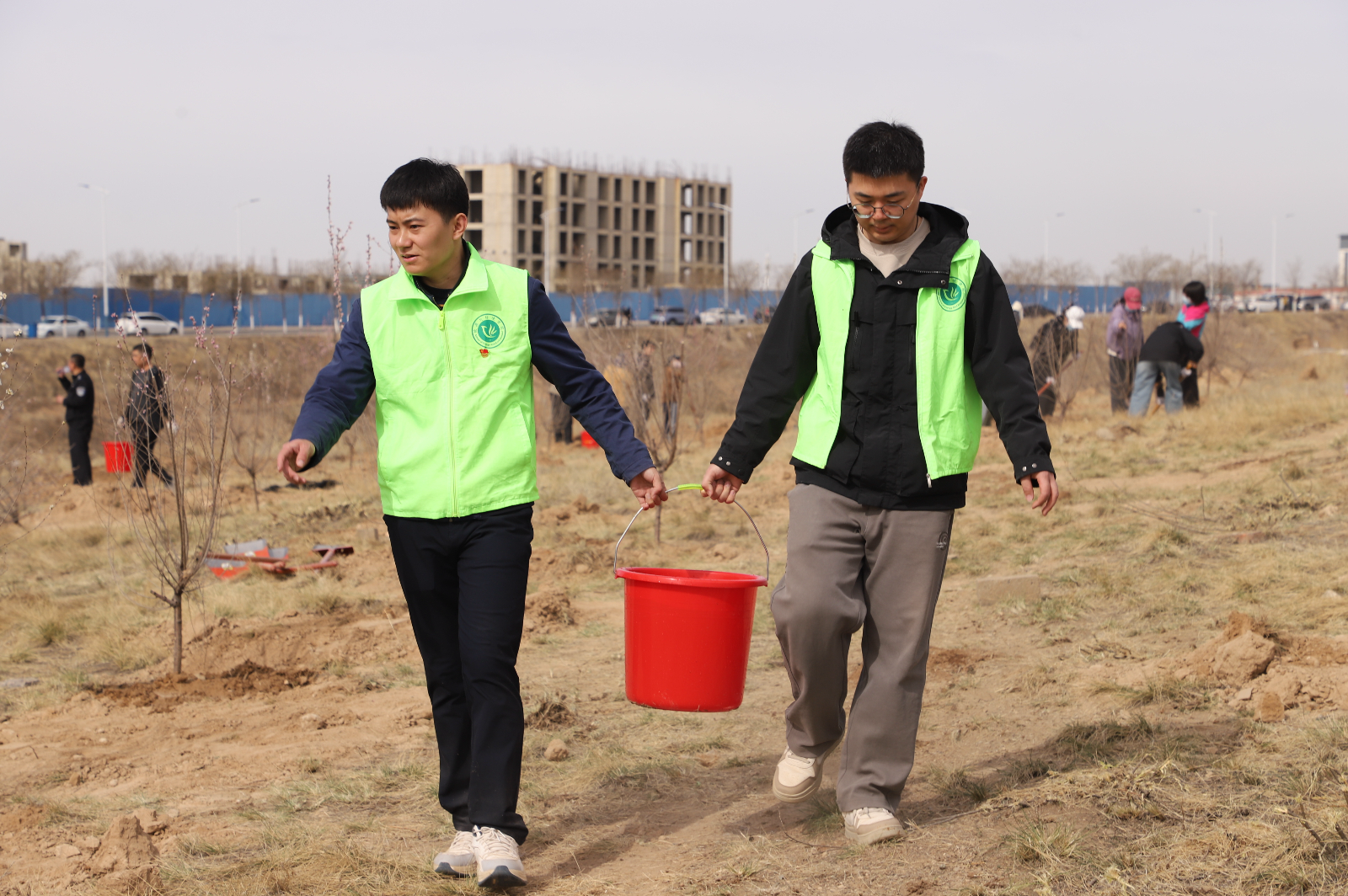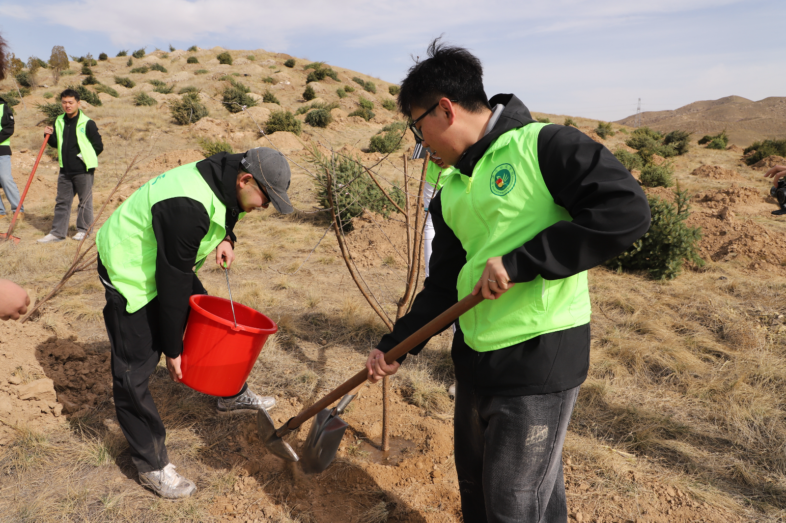 春光明媚万物苏,植树添绿正当时。为深入学习贯彻习近平生态文明思想,牢固树立绿水青山就是金山银山的理念,增强党员“扩绿、兴绿、护绿”意识理念和行动自觉,2025年4月10日上午,beats365党委与包头市林业和草原局党总支联合开展义务植树主题党日活动。活动在包头市石拐区喜桂图新区康庄大道北义务植树基地进行,学院组织师生党员30余人前往参加。以实际行动为打赢防沙治沙黄河“几字弯”攻坚战和筑牢我国北方重要的生态安全屏障贡献青年力量。