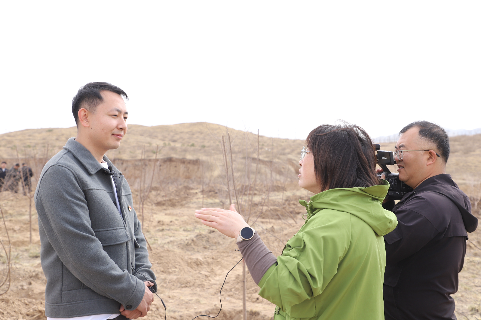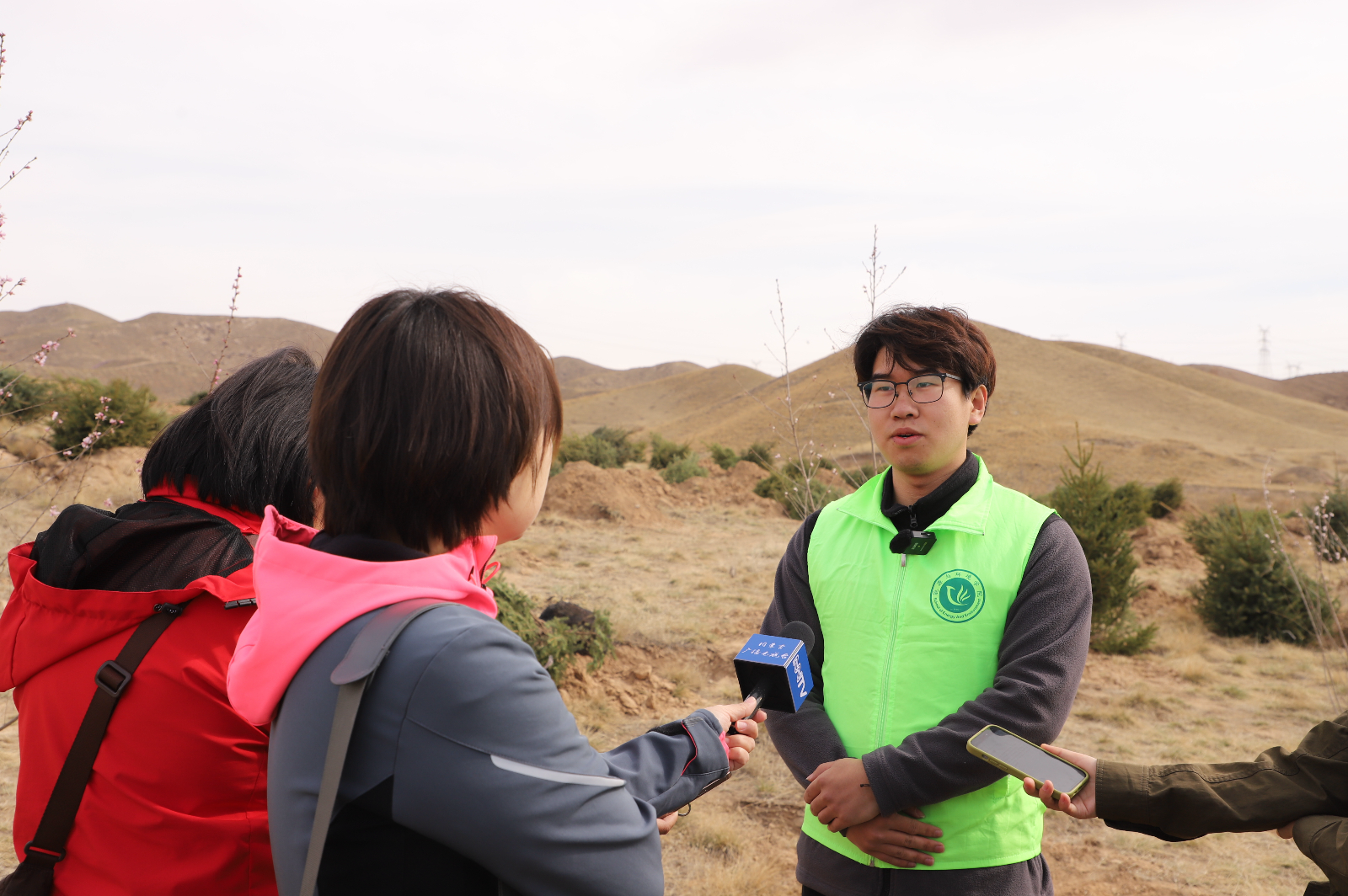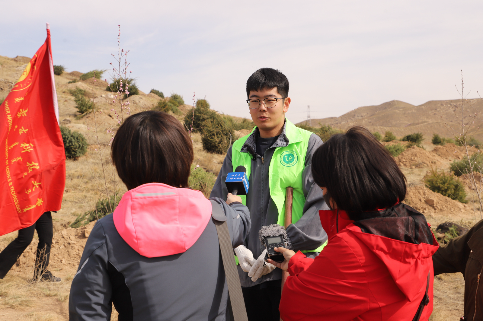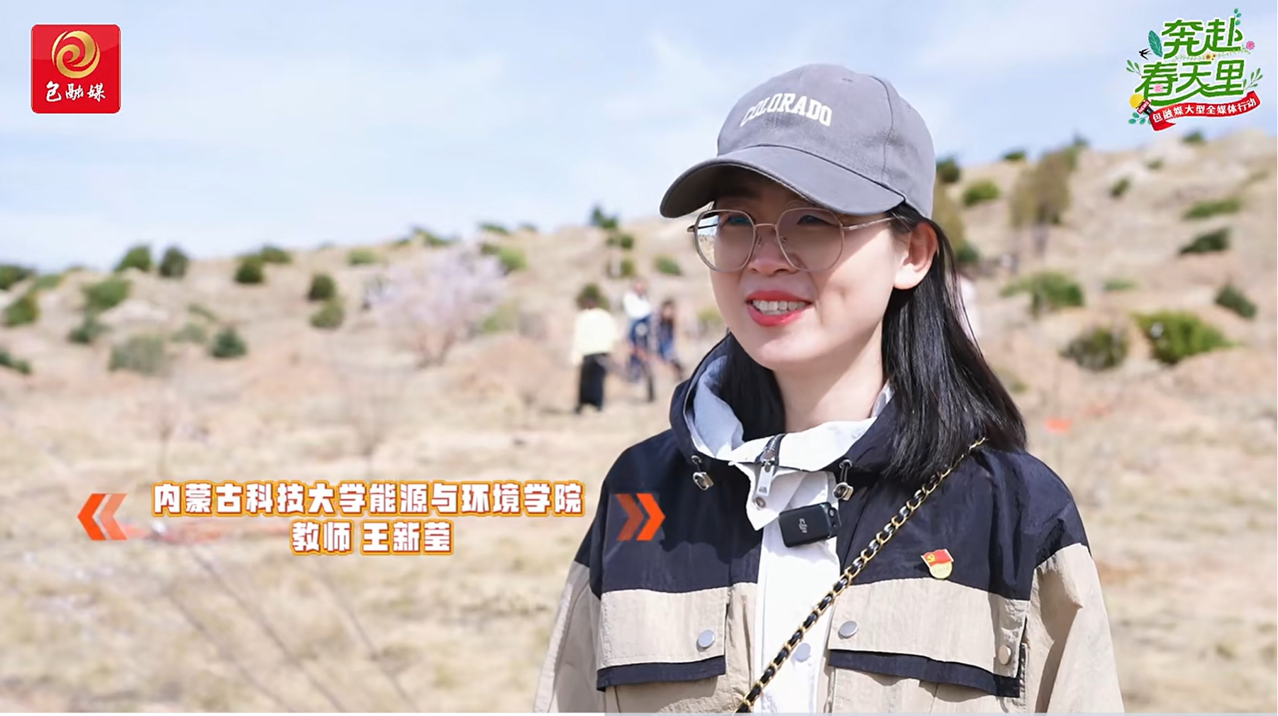 增绿就是增优势,植树就是植未来,植树活动不仅是践行习近平生态文明思想的生动体现,更是一次“行走的绿色思政课”,植树现场就是鲜活的课堂。到达基地后,现场人声鼎沸,但在技术人员指导下,大家两人一组或三五成群,分工协作,干劲十足。有的挥锹铲土,有的扶苗填坑,有的浇水灌溉,每一个环节都认真细致。现场气氛热烈,呈现出一派热火朝天的劳动景象。此外,还有包头市电视台和融媒体记者对学生老师进行了采访。本次活动学院师生共种植云杉、海棠、海红果、山桃等50余棵树,既符合地域气候特点,又兼具景观价值与生态功能。这些树苗将在这里扎根生长,成为北疆生态防线的重要组成部分。