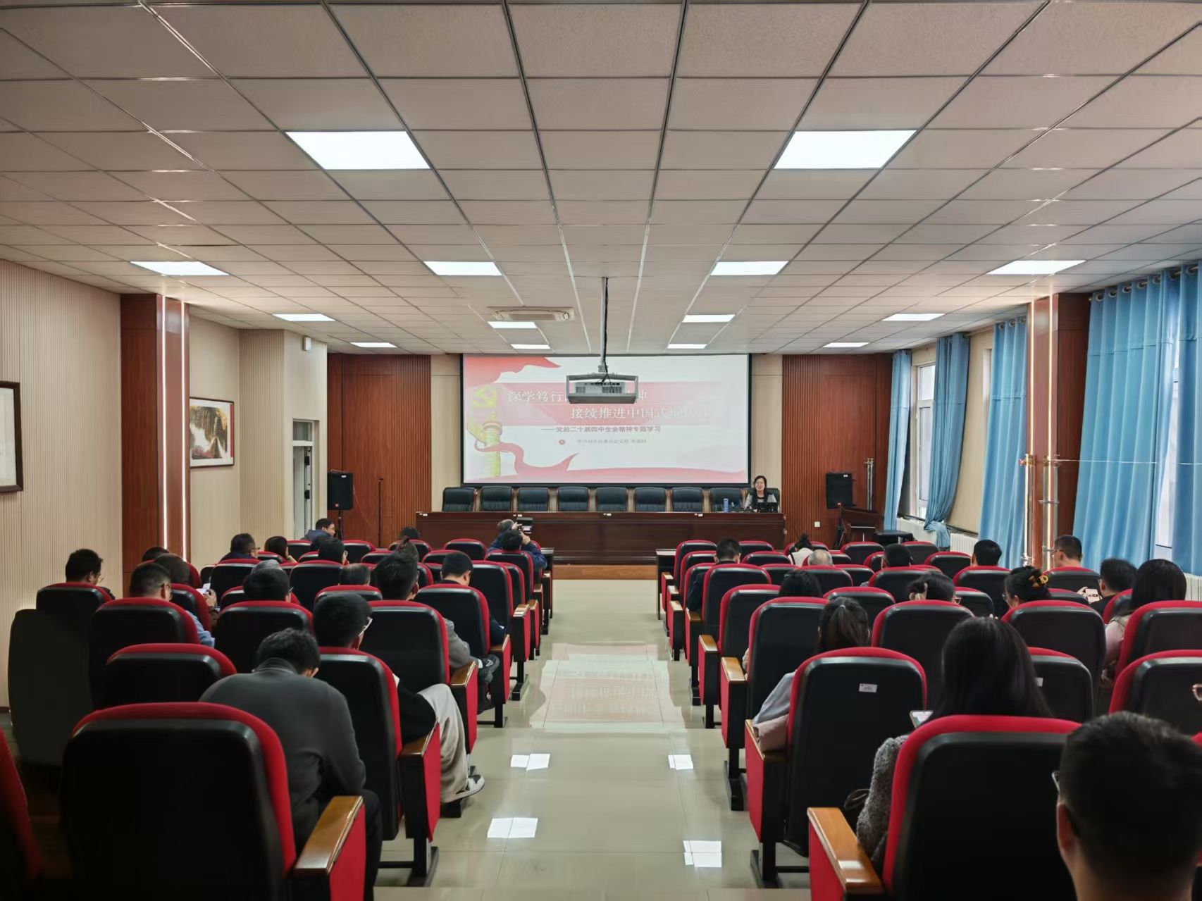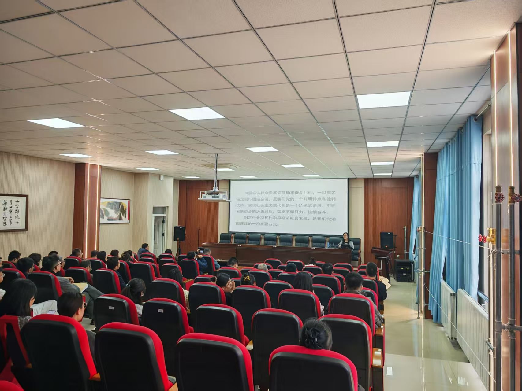 本次讲座特邀中共包头市委员会党校党史党建教研室教师张鹿园莅临授课,围绕党的二十届四中全会精神进行专题辅导。讲座紧密结合当前形势与任务,从“十五五”时期的历史方位、总体部署和重大任务三个方面进行了深入阐释和解读。