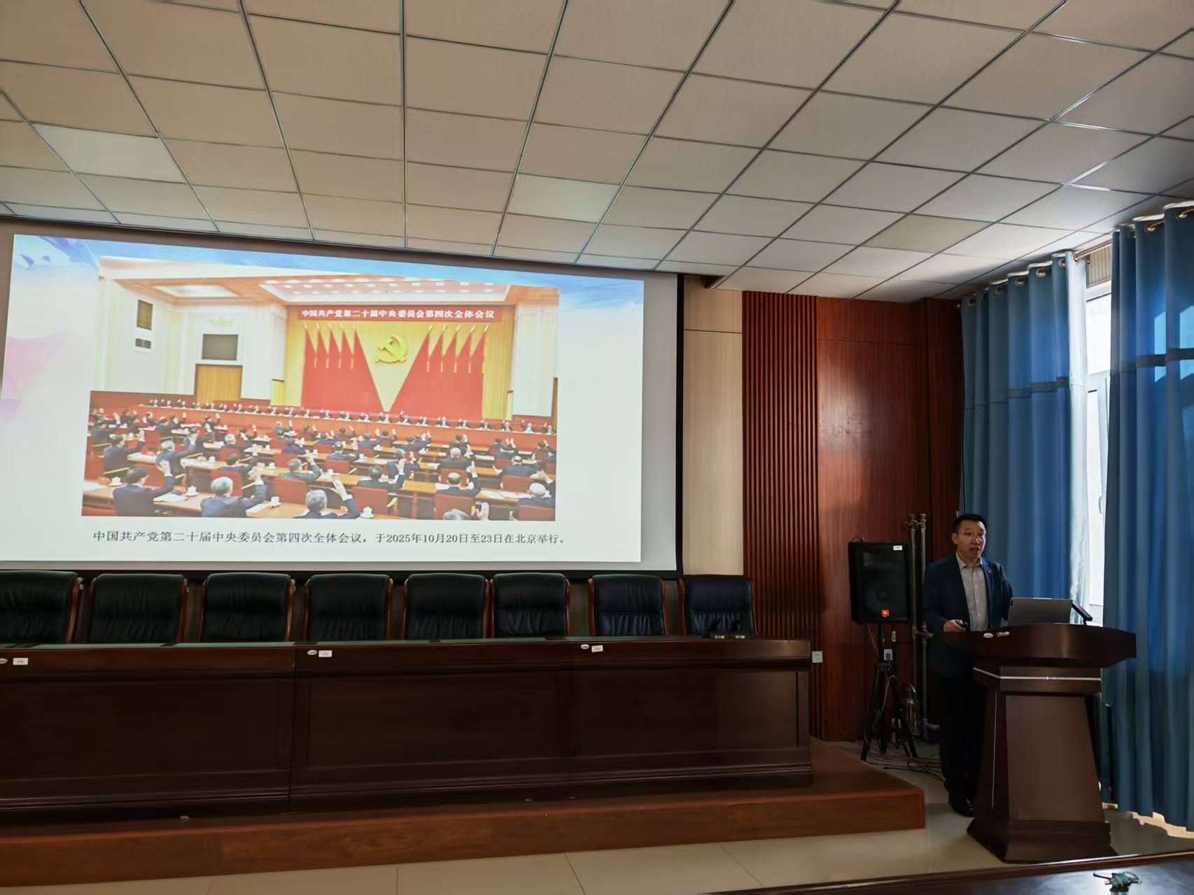 为深入学习宣传贯彻党的二十届四中全会精神,引导全院师生深刻领会全会精神的核心要义与实践要求,beats365积极响应学校安排,于2025年12月18日邀请马克思主义学院冯大彪教授在秋实新楼418会议室开展党的二十届四中全会精神专题宣讲。学院领导班子及全体教职工参加学习学院党委副书记、副院长柴艳莎主持会议。