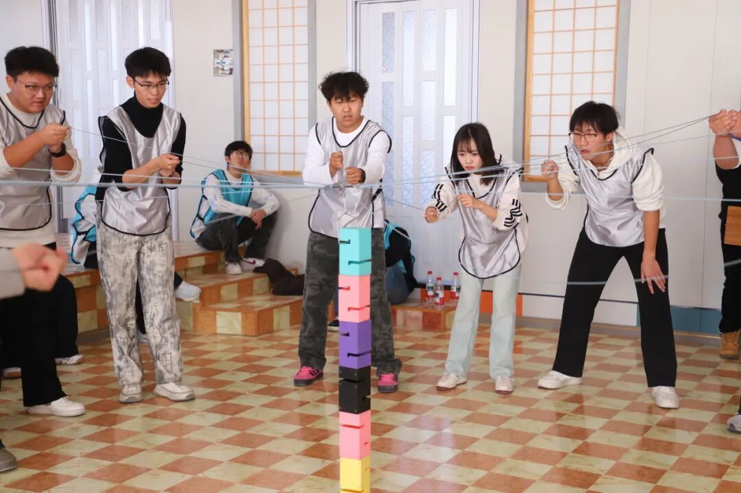 本次素质拓展活动内容丰富多彩,包括合力建塔、一圈到底、趣味冰壶和集体杯子歌等。活动进程中,“青马”学员们始终勇于突破、敢于挑战,在彼此协作、密切配合中渐生默契,情谊也愈发深厚。随着最后一项任务顺利完成,现场瞬间爆发出热烈的掌声与欢呼声,学员们眼中闪烁着感动与自豪的光芒,真切领会到团队力量的无穷潜能,以及不畏艰难、不离不弃的精神内核。