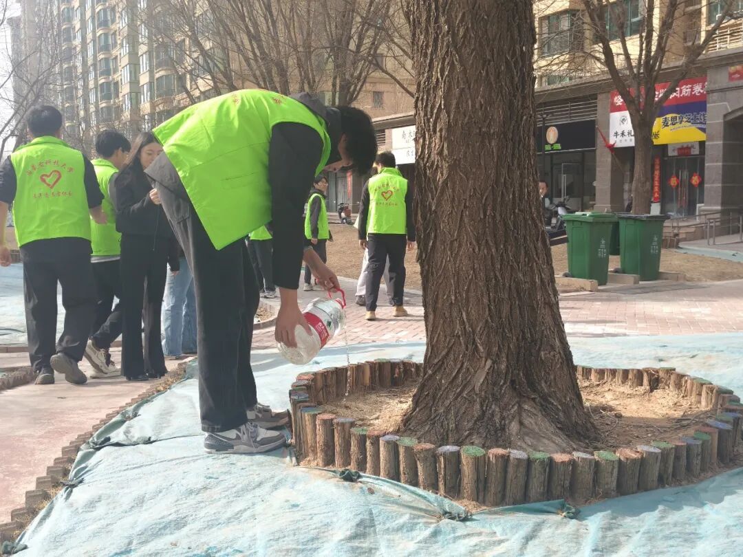 活动在社区工作人员的带领下有序开展,志愿者们化身“护绿使者”,为社区树木浇水养护,用双手呵护每一株绿植,让绿植焕发生机。