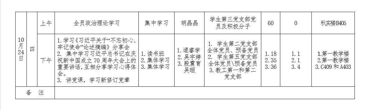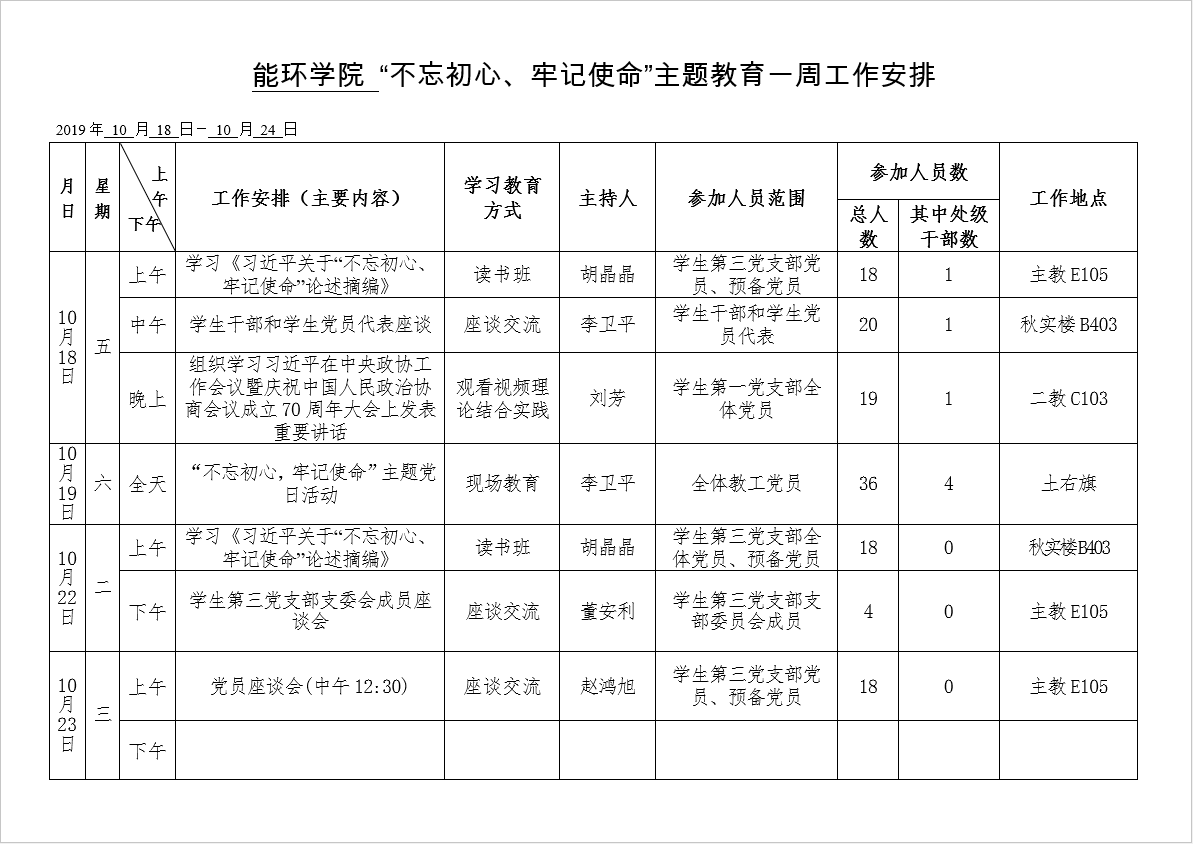 公司“不忘初心、牢记使命”主题教育一周工作安排(10.18-10.24)