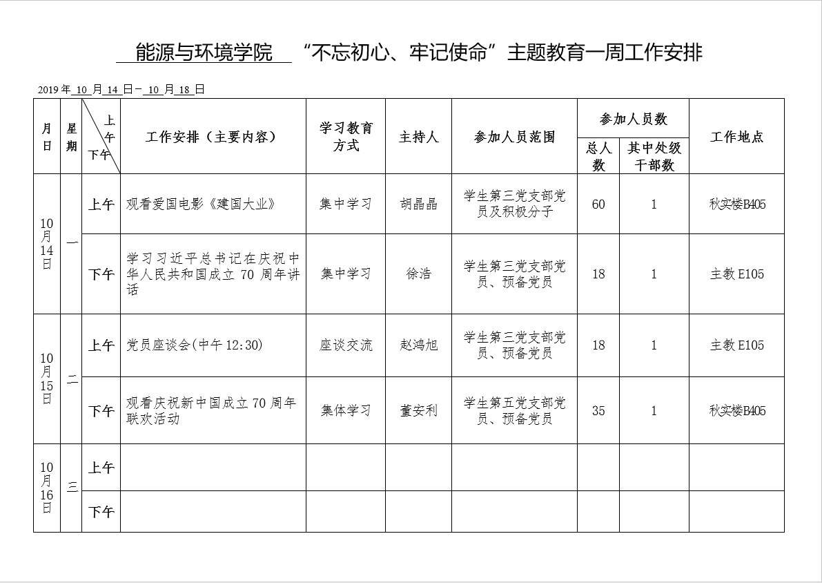 公司“不忘初心 牢记使命”主题教育一周工作安排(10.8-10.12)