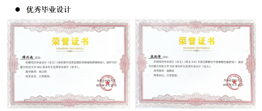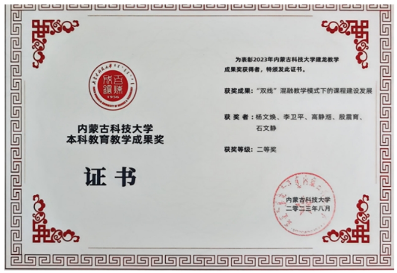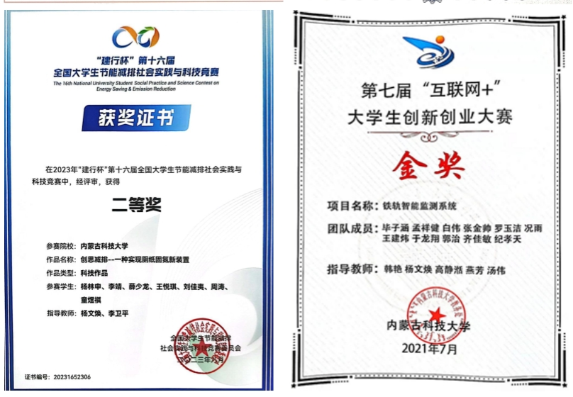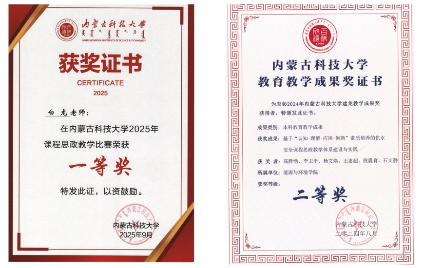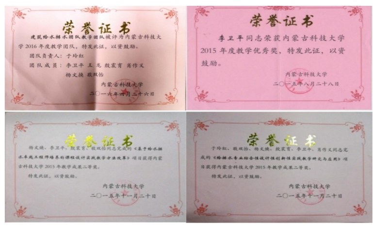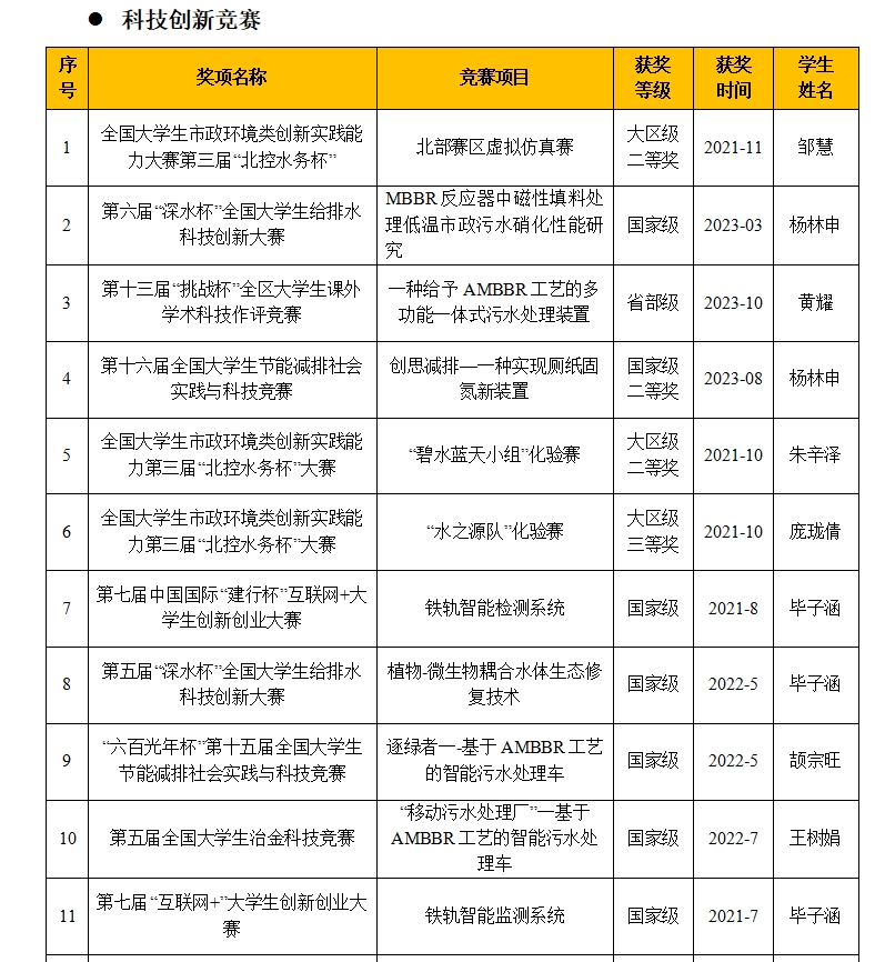 专业现有国家一流本科课程1门,自治区一流本科课程1门,自治区精品课2门,校级课程思政示范课程4门,校级教学团队1个,校级专创融合课1门,获得省级教学成果奖2项,校级教学成果奖5项,发表教改论文40余篇,出版教材10余部。近3年来获得优秀毕业设计国家级一等奖1项,自治区级教学改革项目4项;产教融合成效显著,学生参与各类科技创新竞赛获省部级以上奖30余项,授权专利15项;教师为企业培训技术人员200余人次,联合申请科研项目9项。本专业学生在省部级及以上各类重要学科竞赛中表现突出,在各类BIM竞赛、“深水杯”创新大赛、大学生挑战杯、全国给排水专业毕业设计大赛等科技竞赛和专业比赛中获得省部级以上奖励30余项。